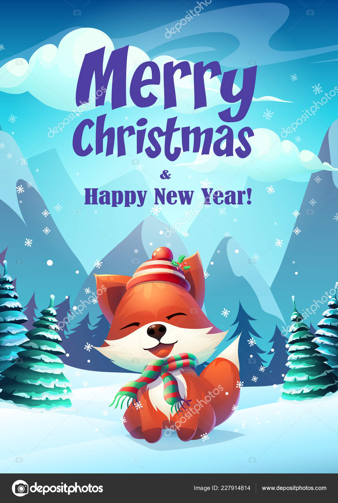 Vector Illustration Funny Fox Greeting Card Merry Christmas Web Video Stock Vector C Nearbirds 227914814